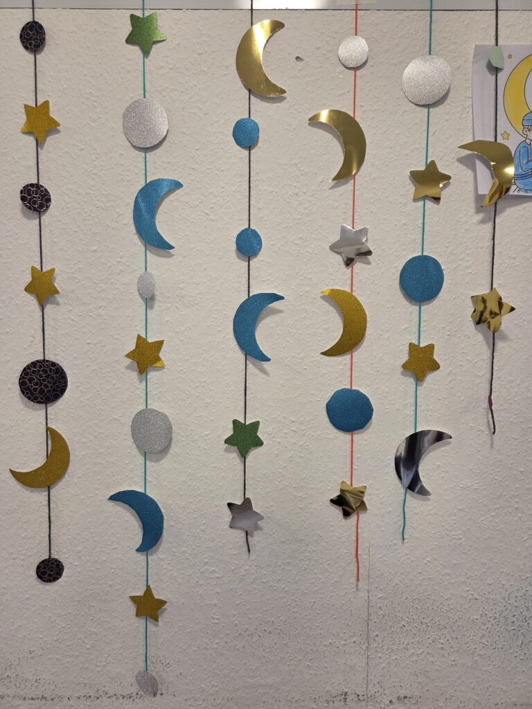 In der darauffolgenden Woche stand das Basteln von Fenster- und Wanddekorationen auf dem Programm. Ziel war es, ein Stück der fröhlichen Stimmung mit nach Hause zu geben. Mit viel Geduld und Eifer gestalteten die Kinder bunte Ornamente und nahmen ihre selbstgemachten Dekorationen stolz mit in ihre Wohnungen. Besonders bereichernd war an diesem Tag die Unterstützung von zwei Bewohner_innen aus den Unterkünften muslimischen Glaubens, die sich ehrenamtlich einbrachten und die Kinder beim Basteln begleiteten. Ihr Engagement war nicht nur für die Kinder eine große Hilfe, sondern hatte auch für sie selbst eine besondere Bedeutung. Im anschließenden Austausch meldeten sie zurück, wie wertschätzend sie die Aktion erlebt haben und wie gut es ihnen getan hat, nicht immer nur in der Rolle der Hilfesuchenden zu sein, sondern selbst aktiv unterstützen und helfen zu können. Wir konnten gemeinsam eine lebendige und kreative Zeit erleben, in der sowohl Fasching als auch der Beginn des Ramadan ihren Platz fanden und wertschätzend miteinander verbunden wurden.