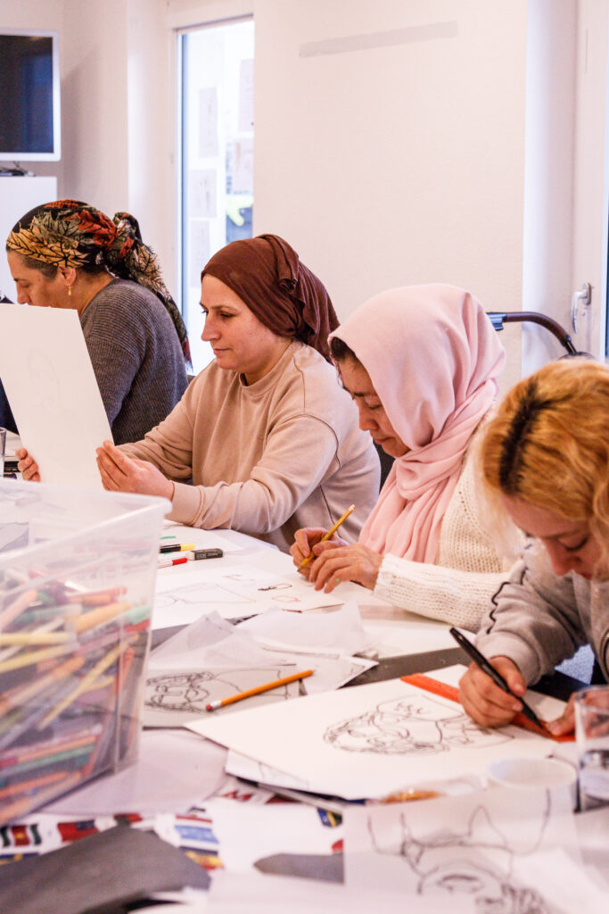 Durch die künstlerische Begleitung von Arthelps sind all diese Gedanken und Gefühle kreativ sichtbar geworden. Symbole, Farben, Schrift und Porträts flossen in individuelle Kunstwerke ein, die jeweils ein ganz persönliches Verständnis von Teilhabe ausdrücken. Der kreative Prozess eröffnete neue Zugänge – auch für Teilnehmende mit geringen Sprachkenntnissen.